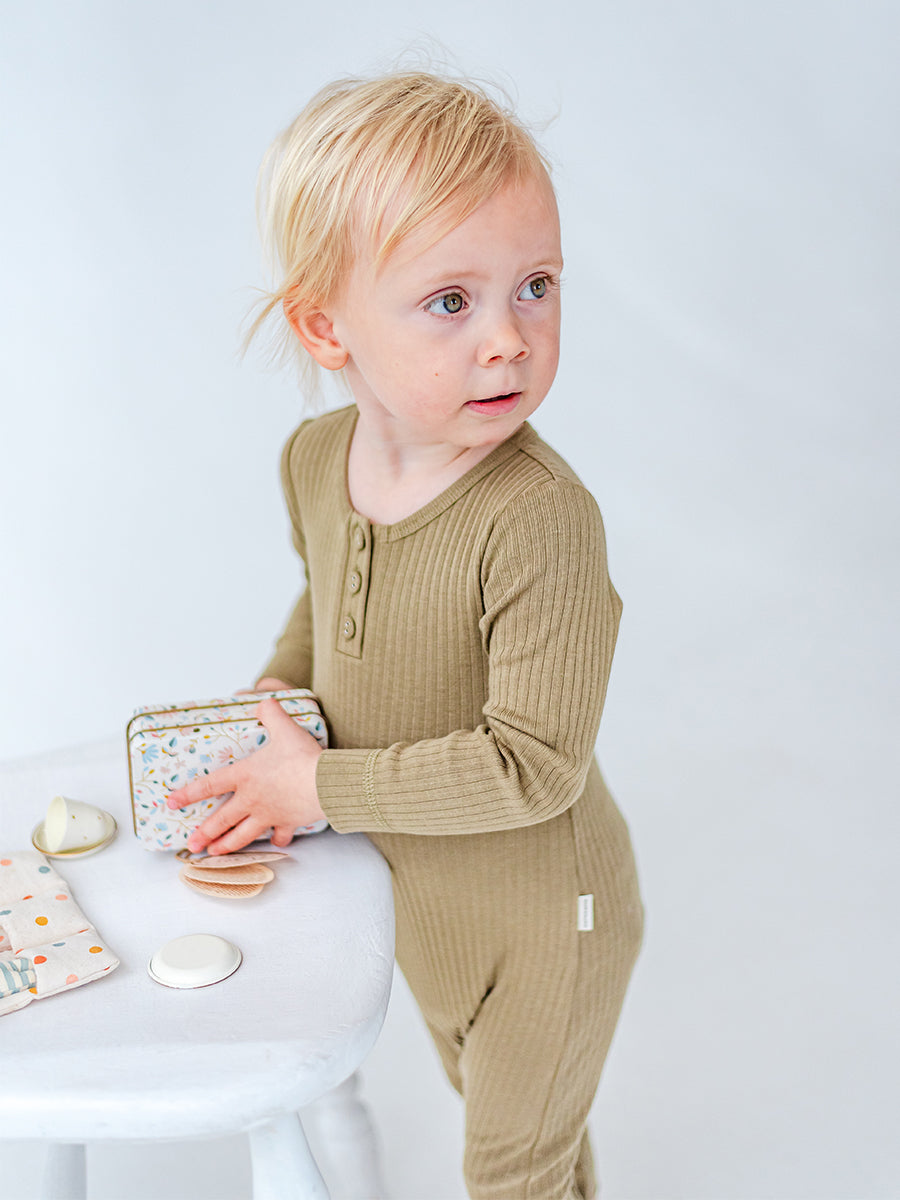 Organic Essential Long-Sleeve Sleepsuit, Moss