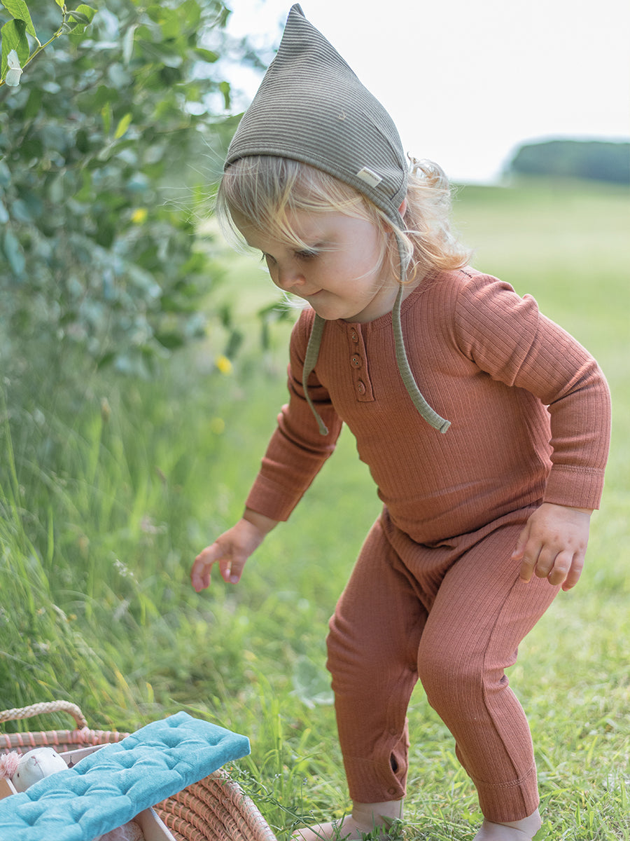 Organic Essential Long-Sleeve Sleepsuit, Cinnamon