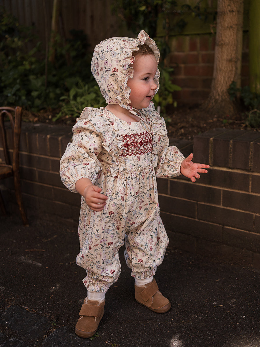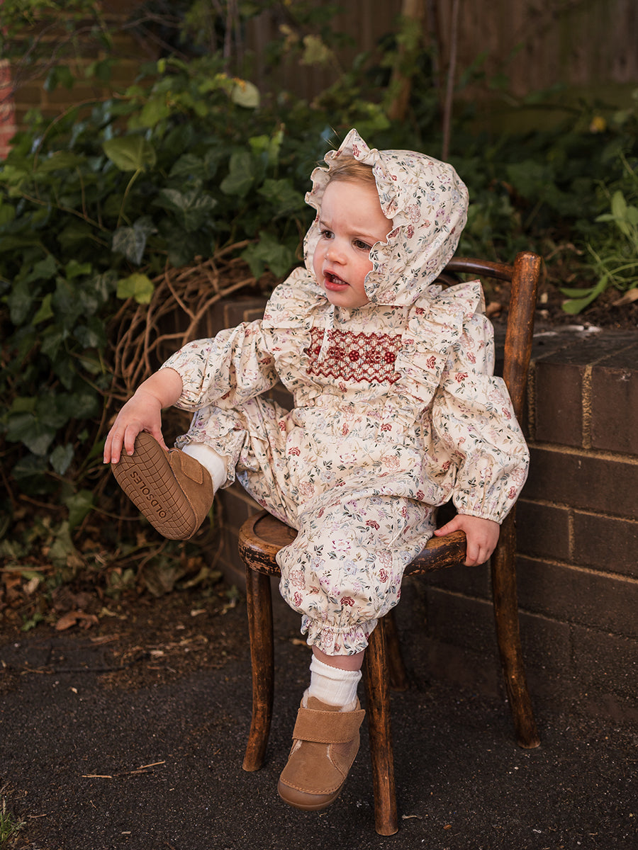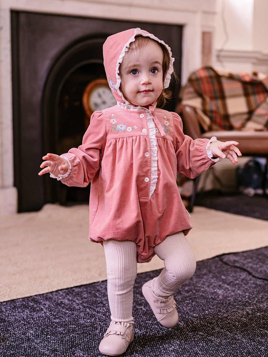 Adelaide Hand-Embroidered Romper, Vintage Bouquet, Rose