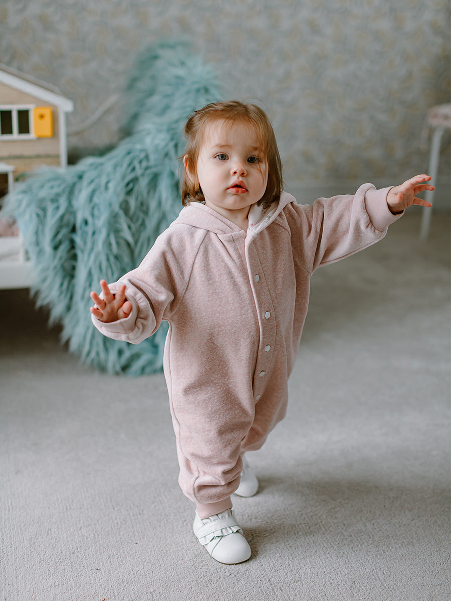Organic Essential Long-Sleeve Sleepsuit, Peach