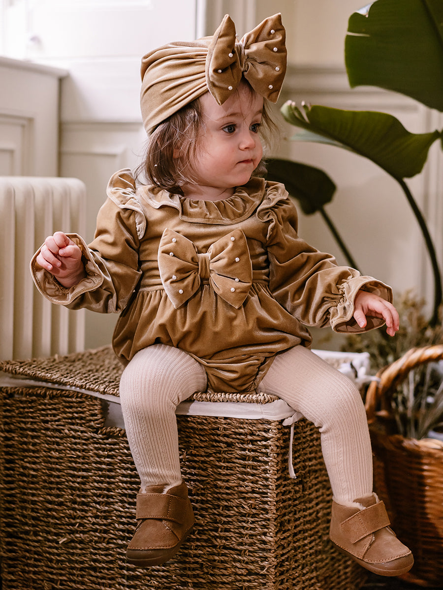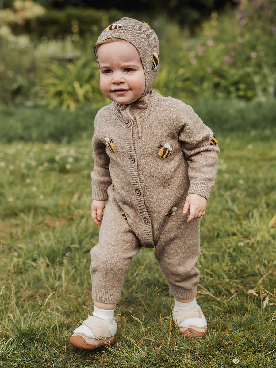 Quinn Hand-Embroidered Knitted Romper, Smoky Brown