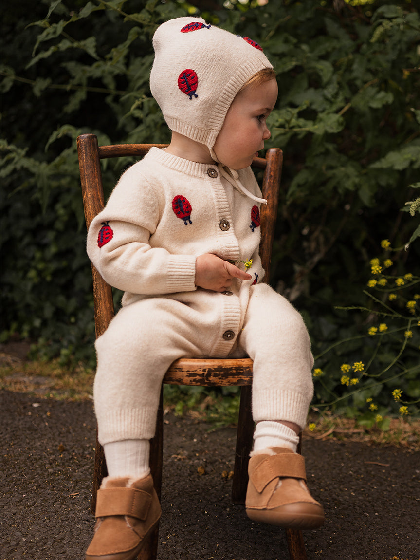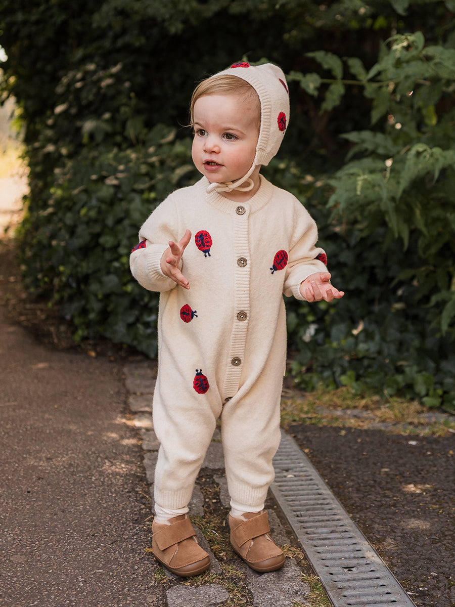 Quinn Hand-Embroidered Knitted Romper, Almond White