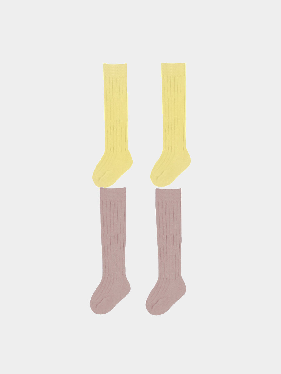 Etienne Knee High Socks Set of 2, Butter Yellow & Lilac