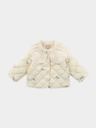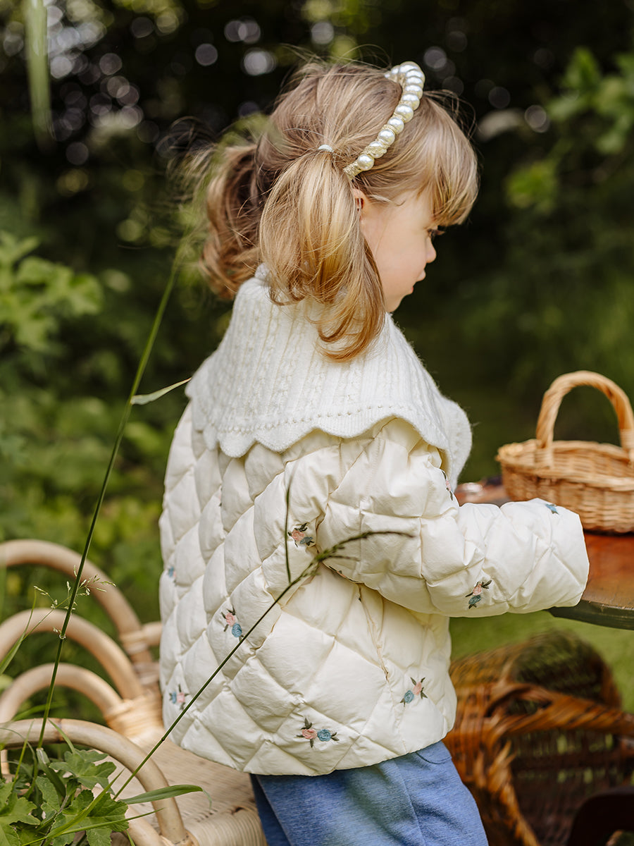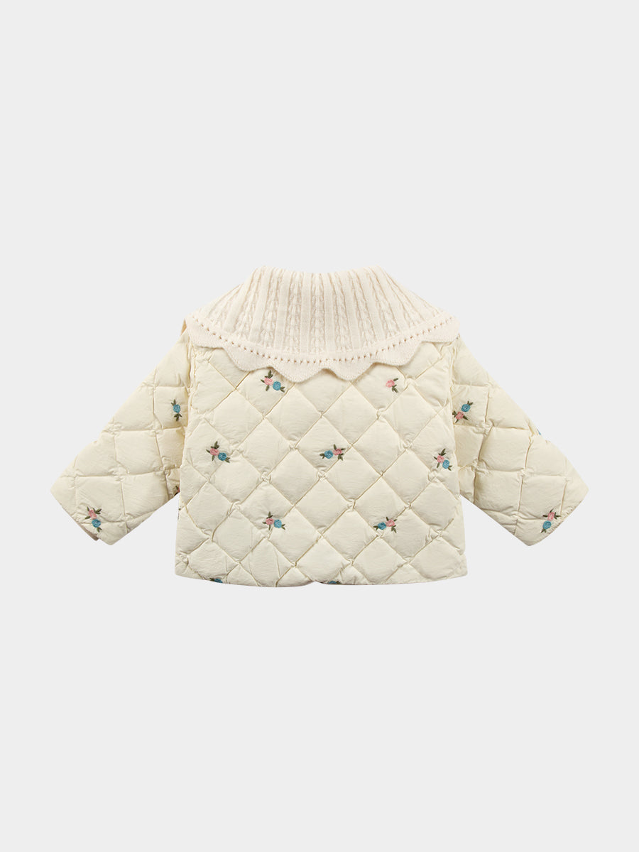 Sage Knitted Collar Quilted Down Jacket, Ivory White