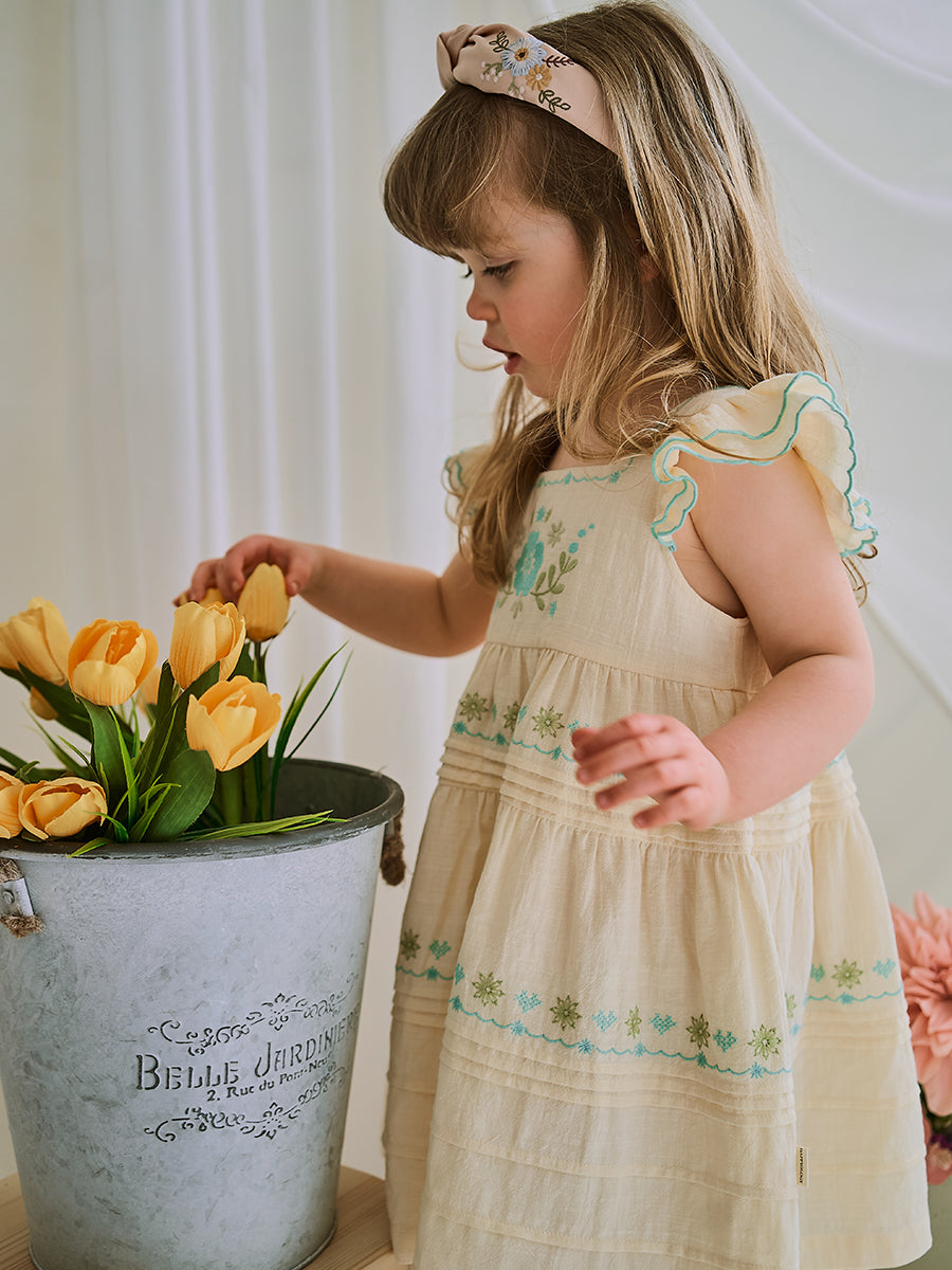 Palmeira Embroidered Dress, Cream