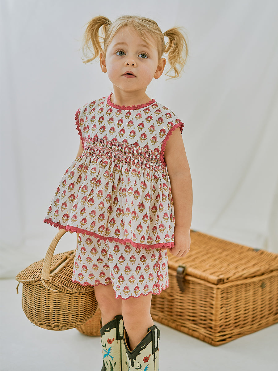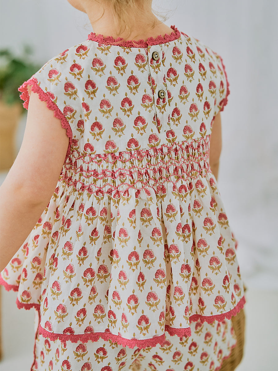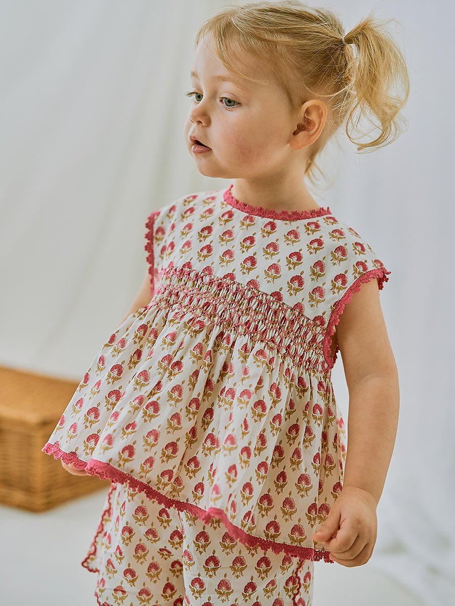 Ashoka Hand Smocked Blouse, Printed Rosa White