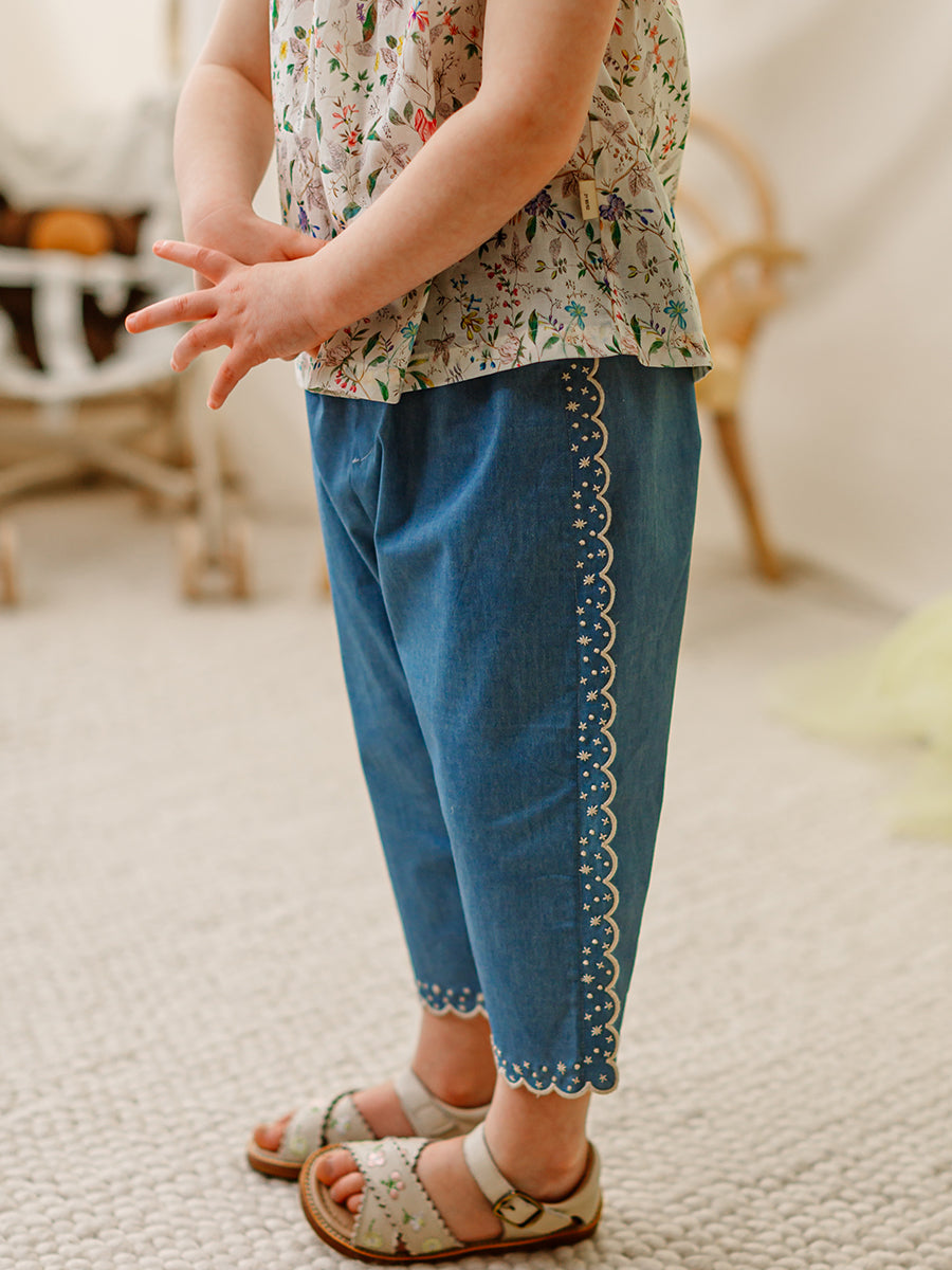 Amara Heart Patchwork Trousers, Soda Blue