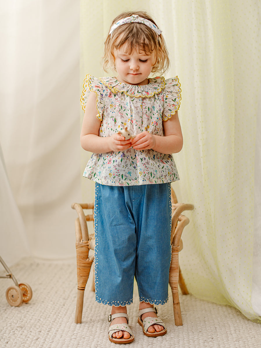 Adiya Embroidered Blouse, Mid Summer Garden Milk
