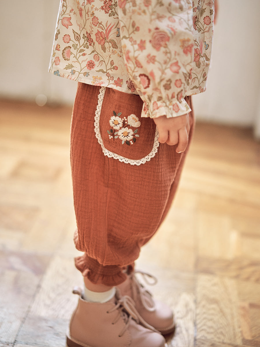 Prisha Embroidered Pants, Primrose Vine Yard Green