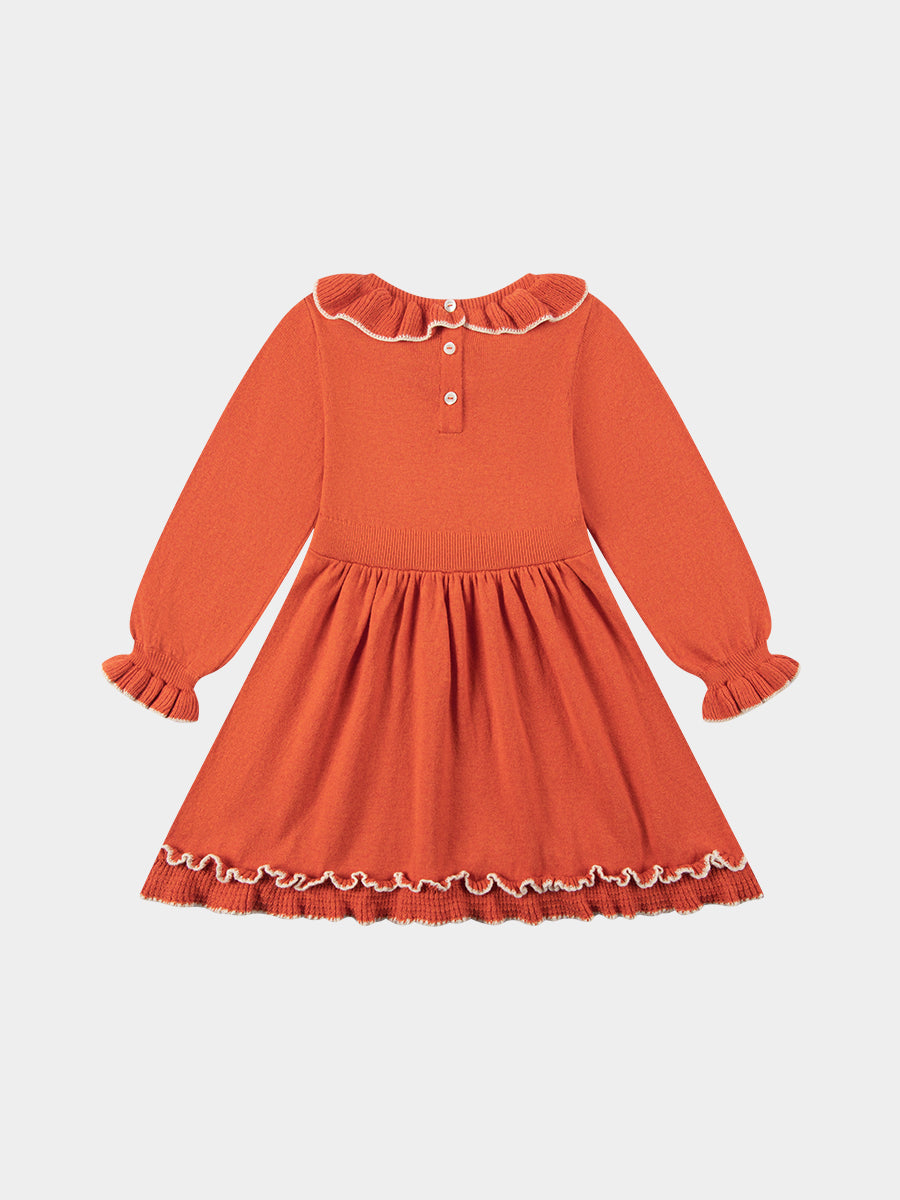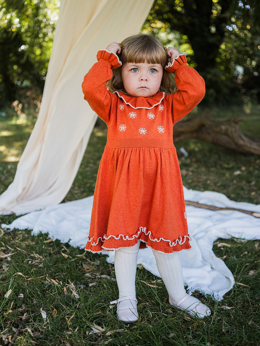 Marie Hand-Embroidered Knitted Dress, Dawn Orange