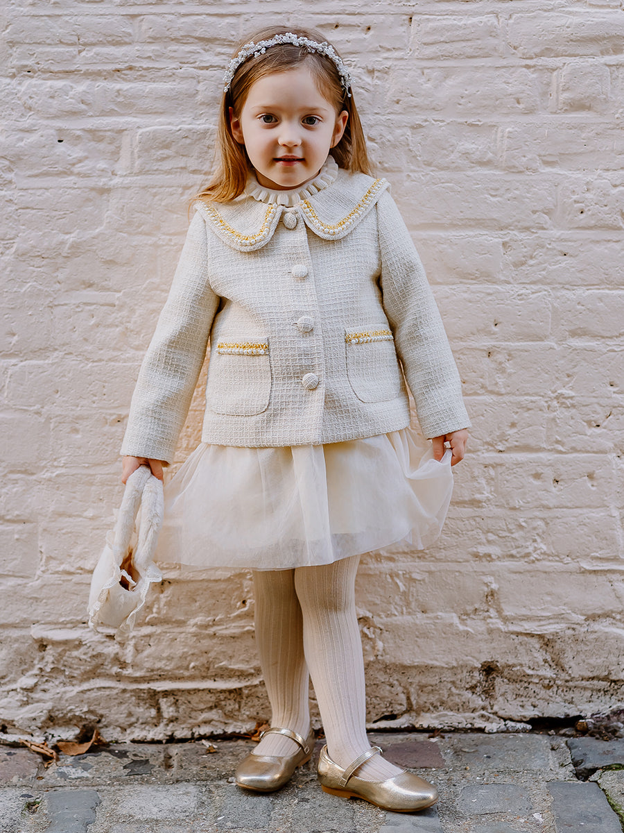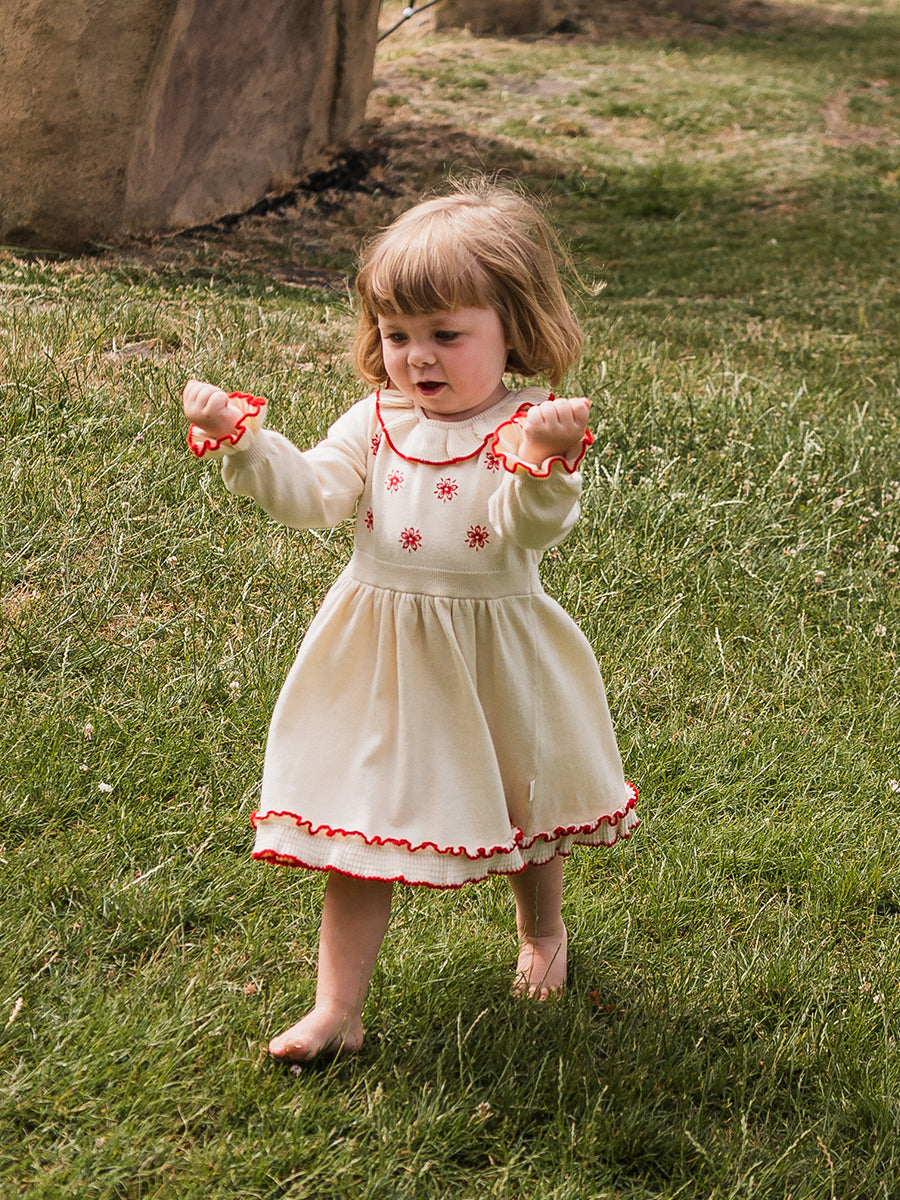 Marie Hand-Embroidered Knitted Dress, Crème Brulee