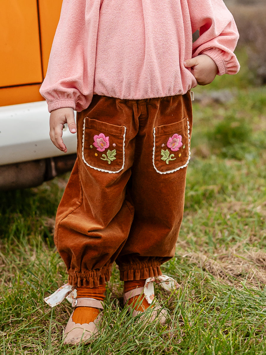 Camila Quilted Trousers, Strawberry Flower Field, White