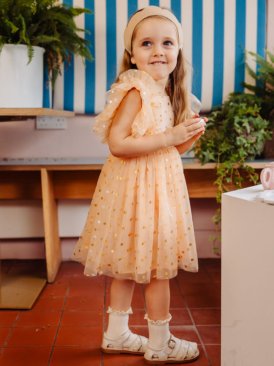 Singapore Tulle Dress, Golden Polka