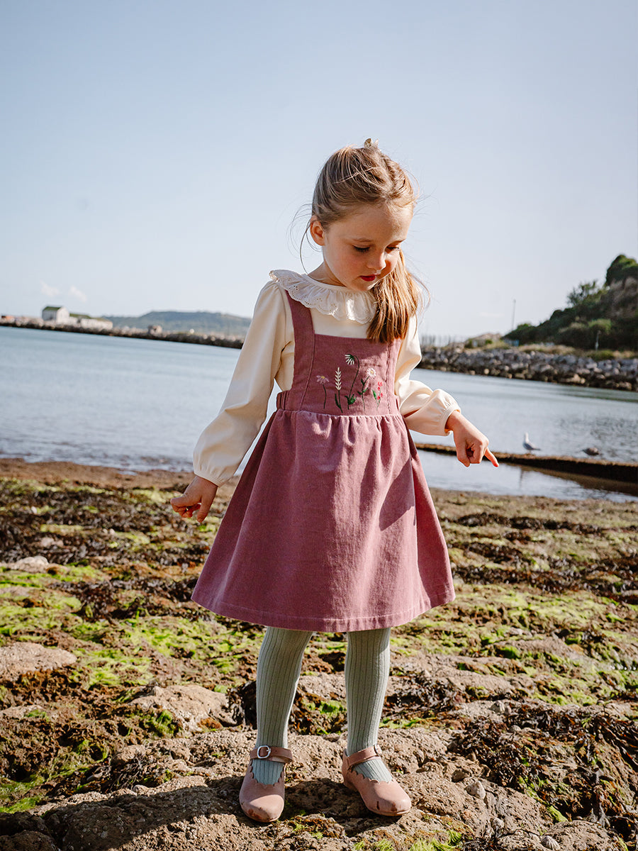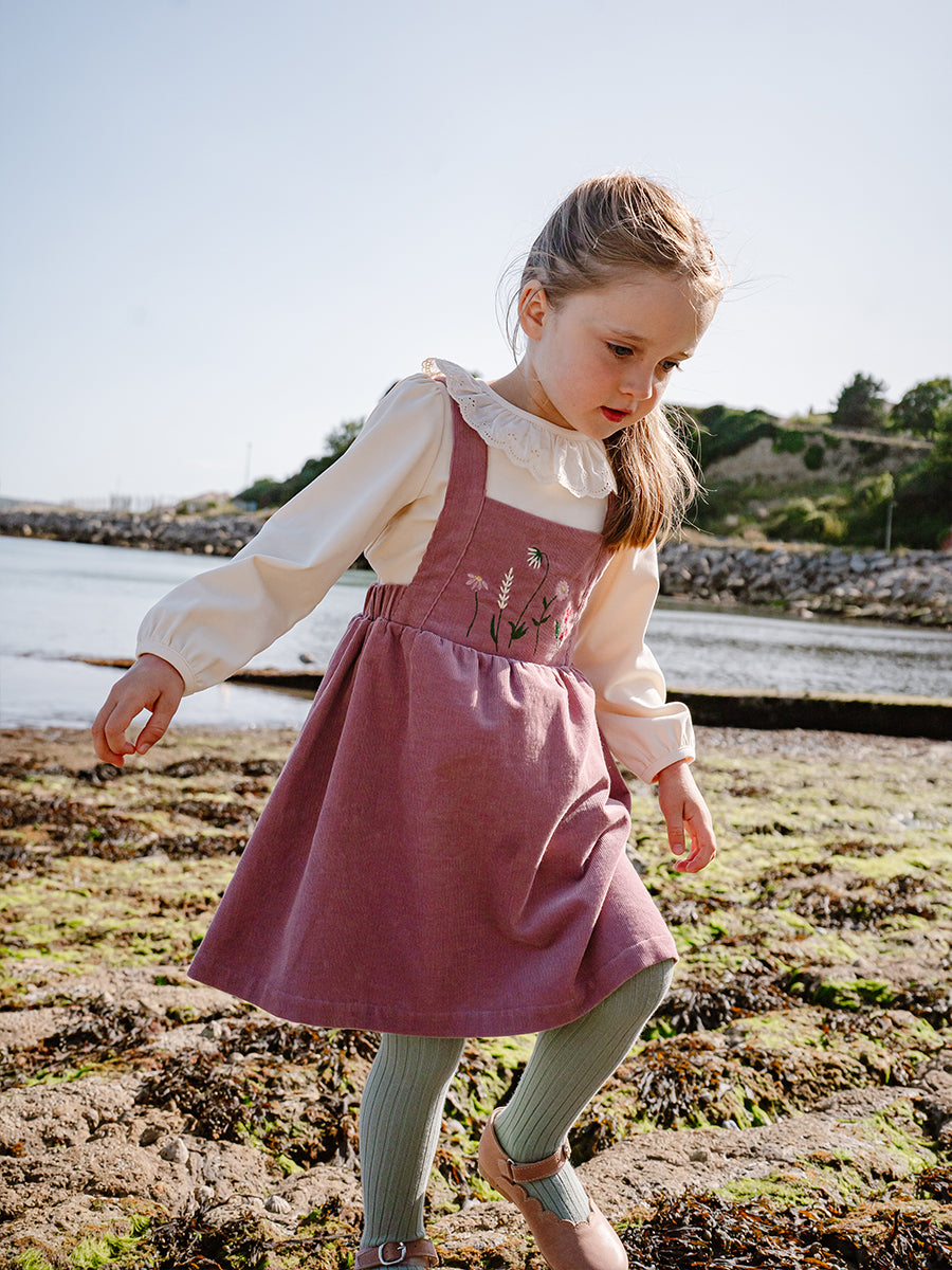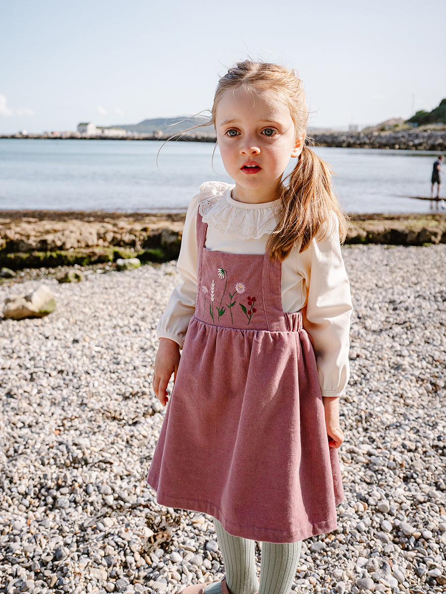 Kalmia Embroidered Corduroy Overall Dress, Misty Pink