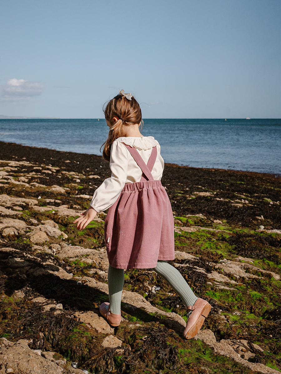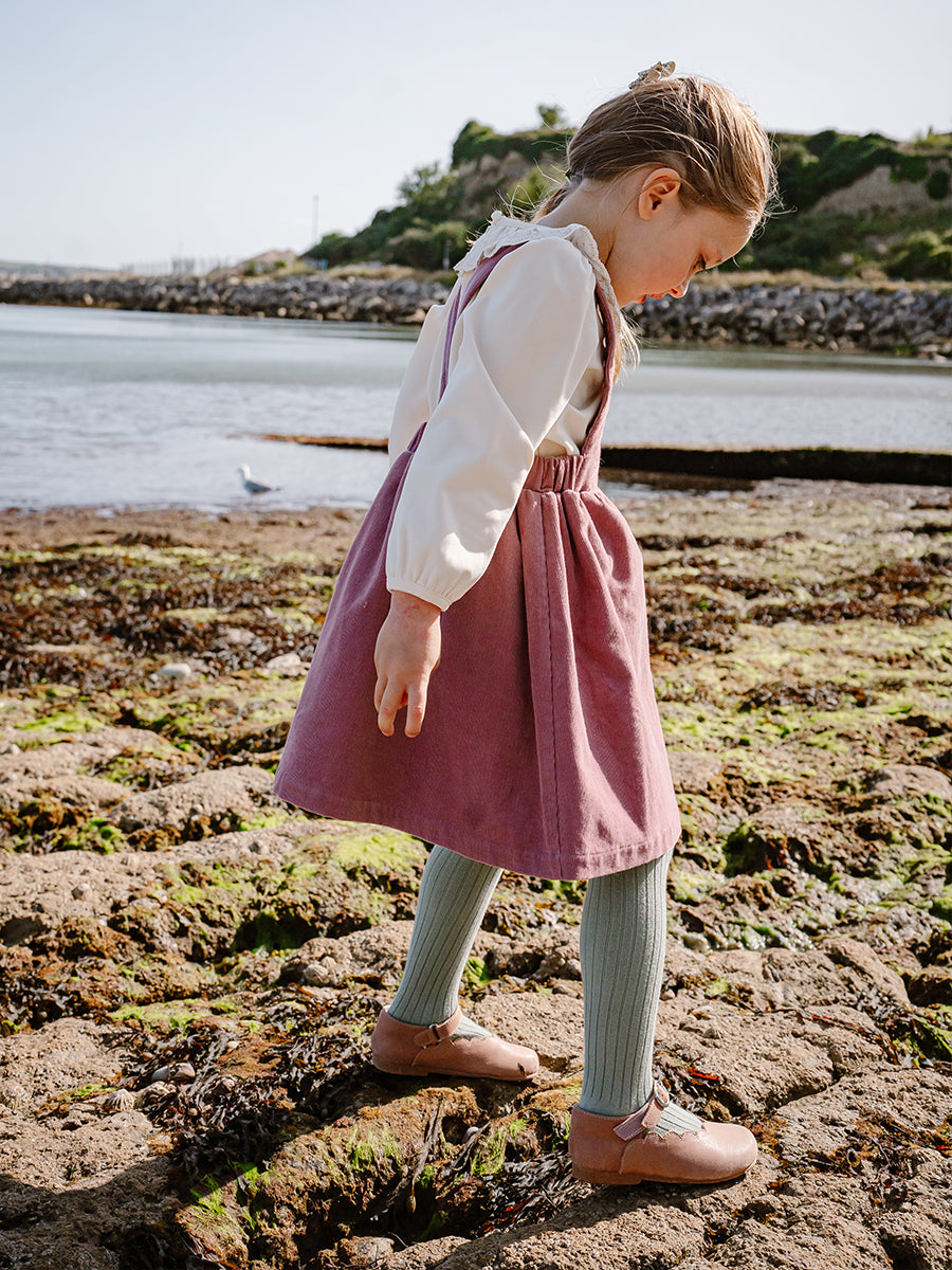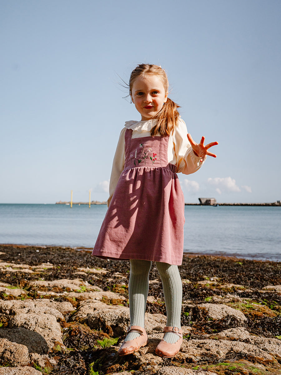 Kalmia Embroidered Corduroy Overall Dress, Misty Pink