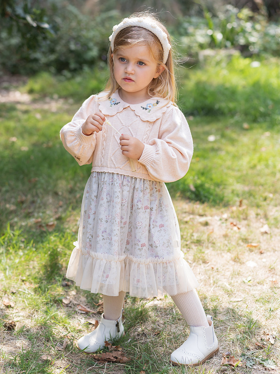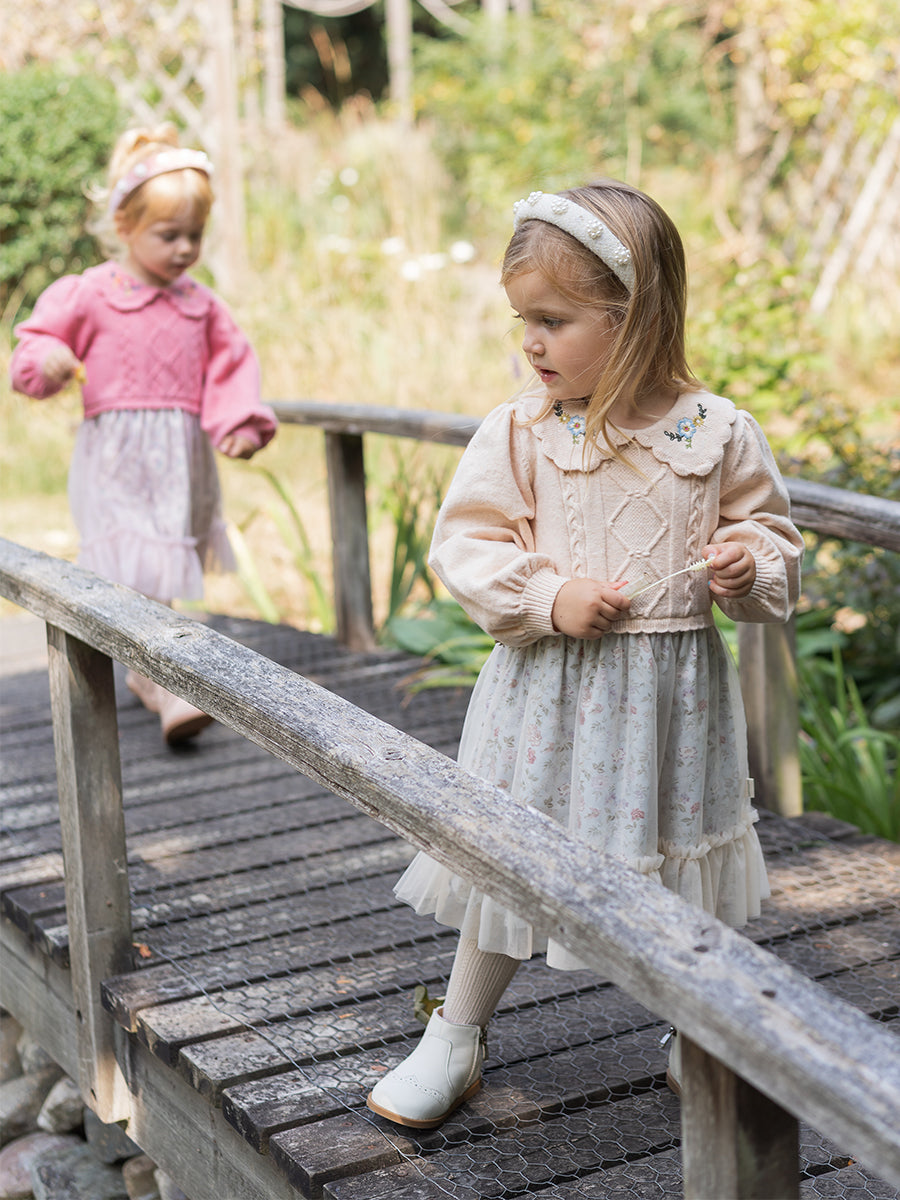 Laila Embroidered Dress, Strawberry Flower Field, Blush