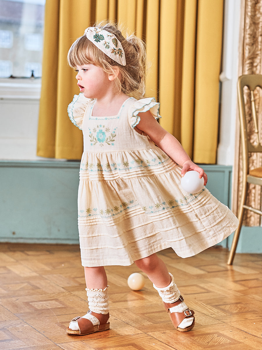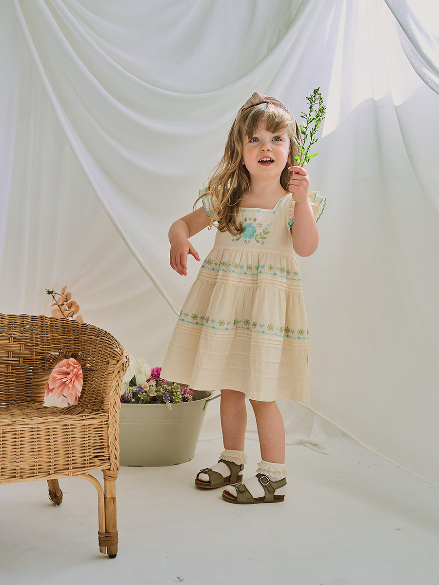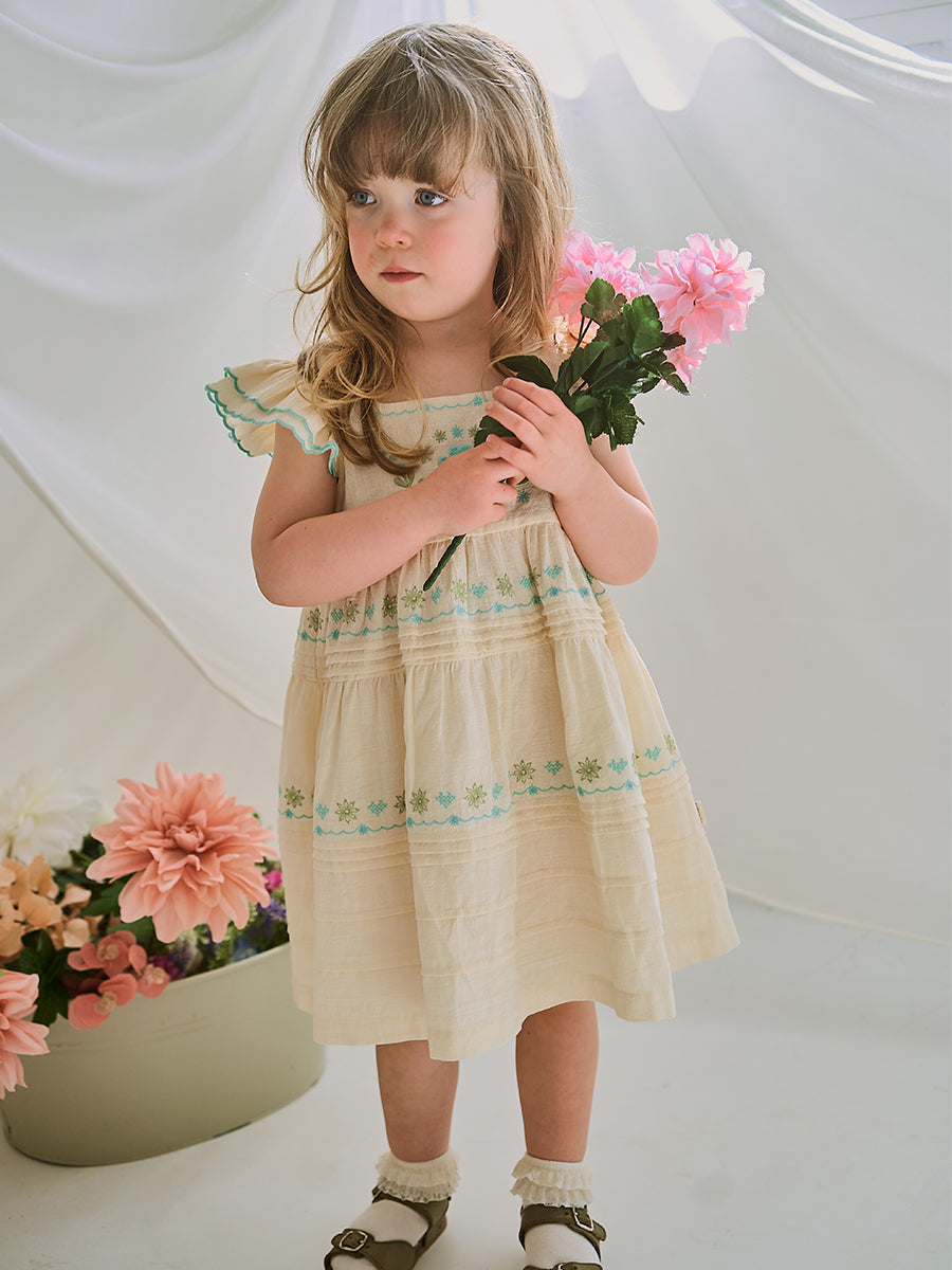 Palmeira Embroidered Dress, Cream