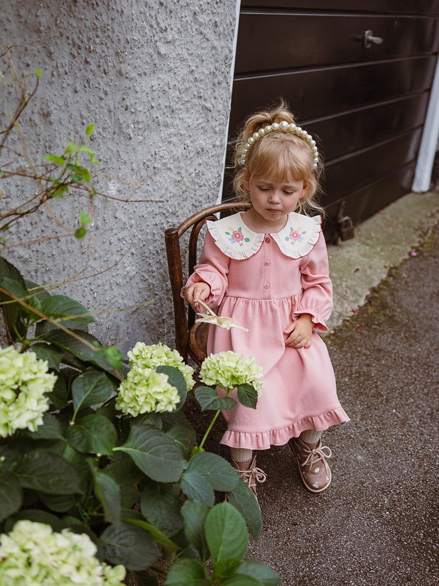 Celine Smocking Dress, Wildflower Polka, Burgundy