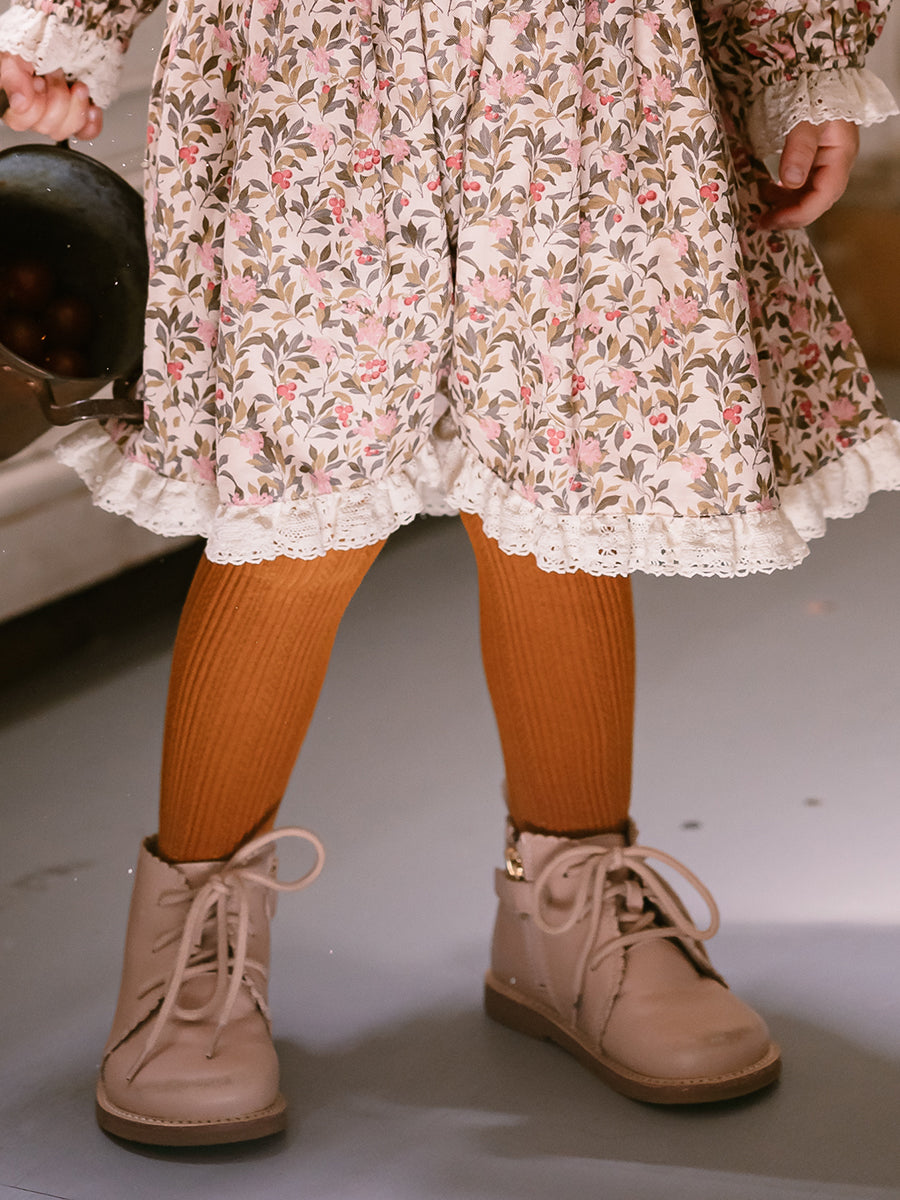Jessielle Ankle Socks with Floral Ruffle, Caramel & Crème Brulee