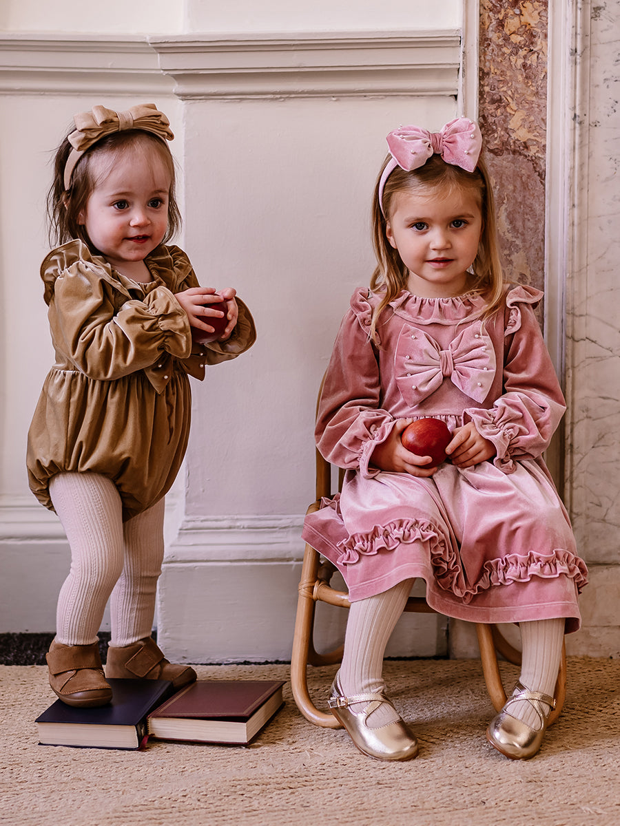 Jessielle Ankle Socks with Floral Ruffle, Misty Pink & Caramel
