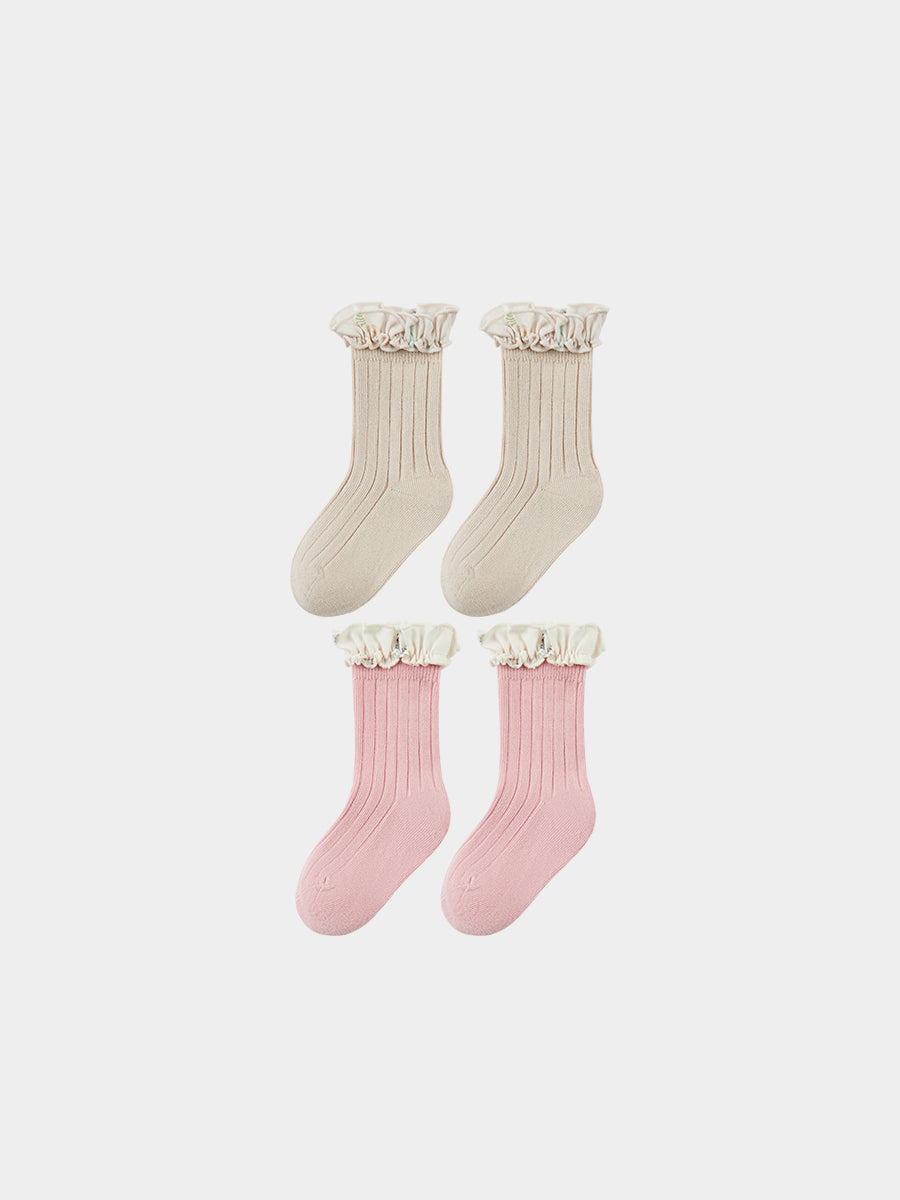 Jessielle Ankle Socks with Floral Ruffle, Misty Pink & Crème Brulee