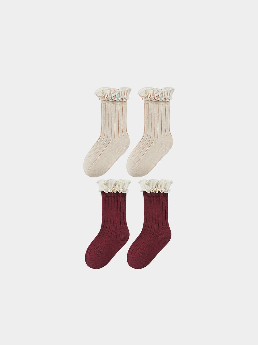 Lace Frill Etienne Knee High Socks Set of 2, Butter Yellow & Lilac