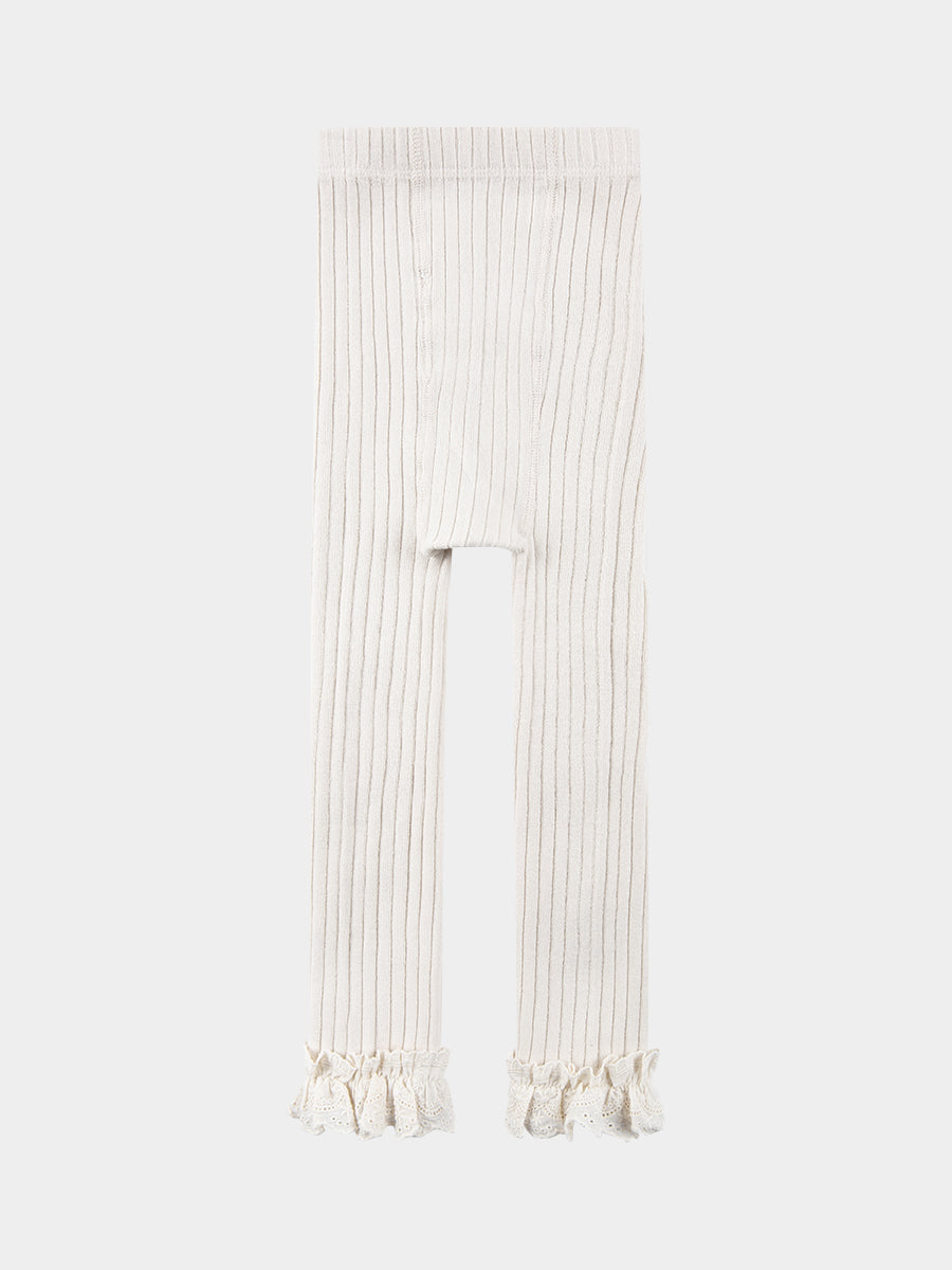 Lace Ruffle Organic Cotton Leggings, Milk White