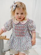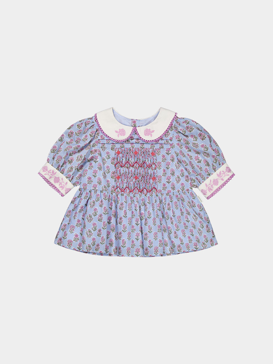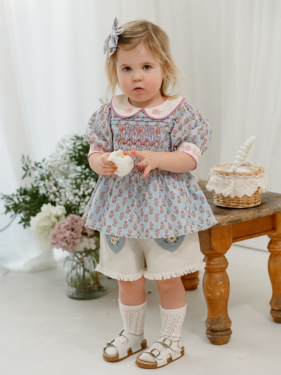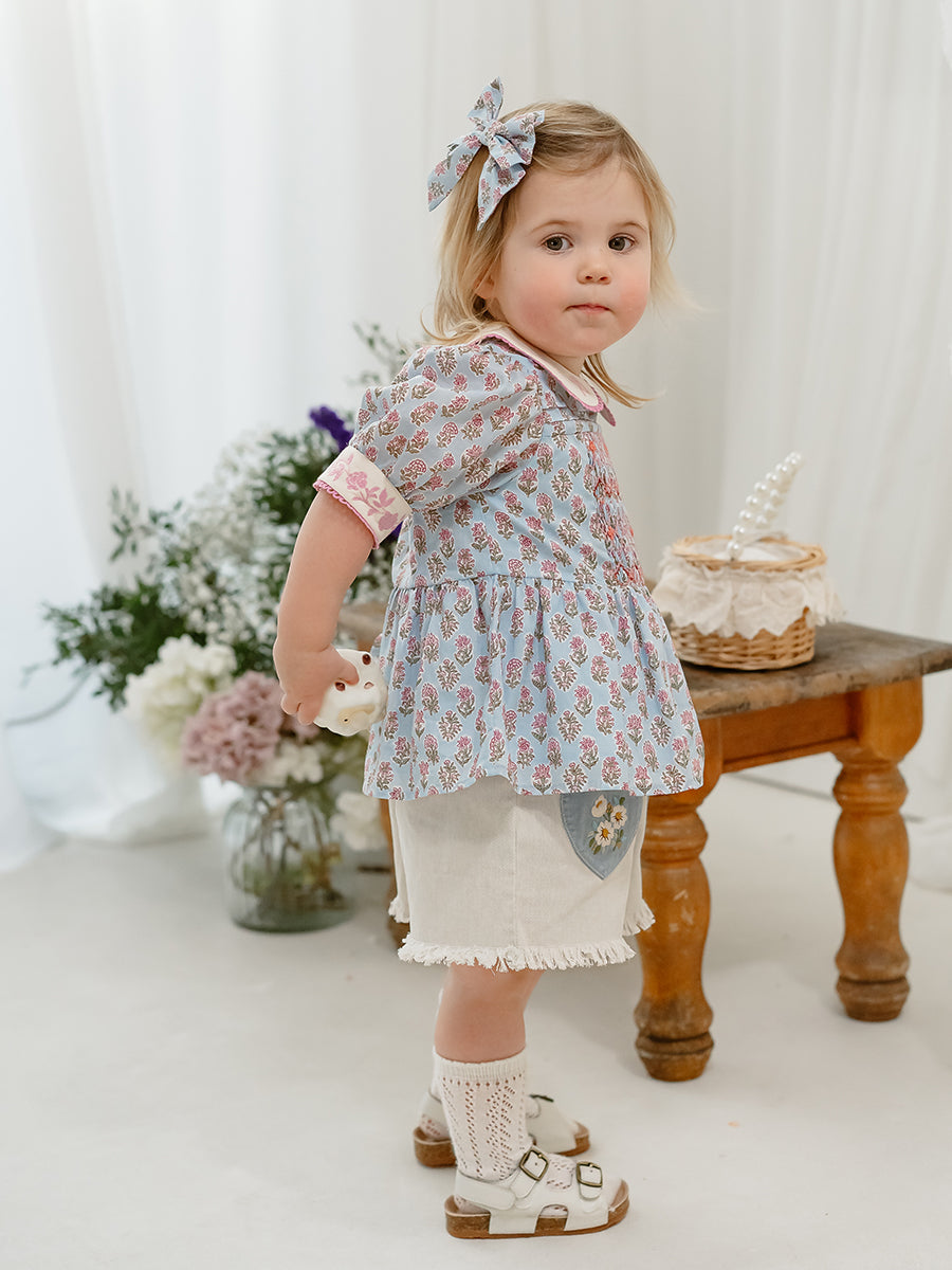 Trapani Hand-Embroidered Blouse, Spring Delight, Blue
