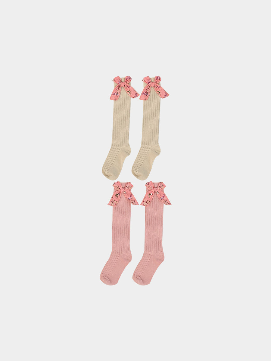 Noelle Bow Socks, Misty Pink & Crème Brulee