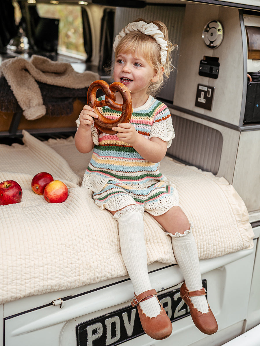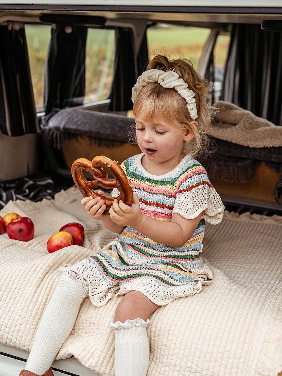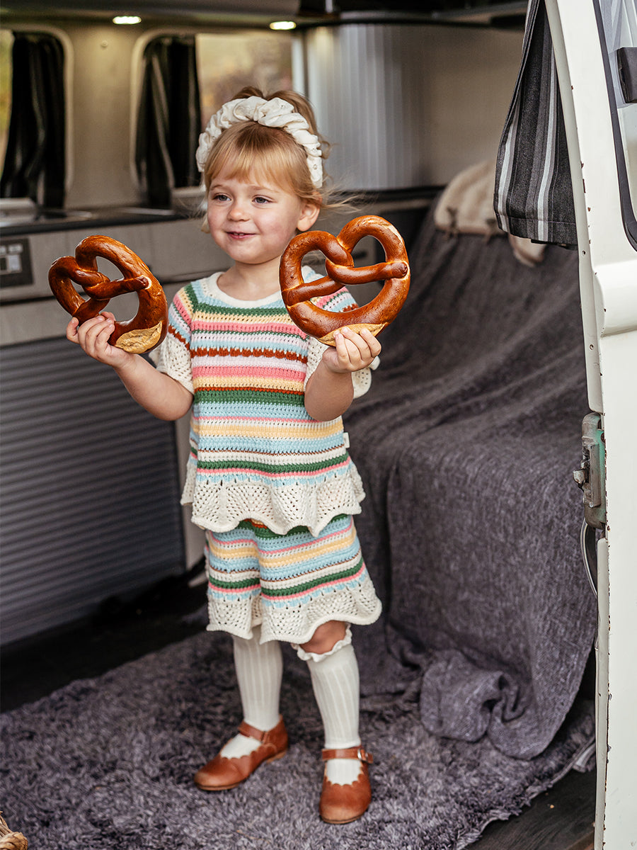 Um die richtige Passform zu gewährleisten, ist unsere Kleidung so konzipiert, dass sie bis zu einer bestimmten Größe passt. Beispielsweise ist die Größe 18M für ein Kind bis zu einem Alter von 18 Monaten oder einer Körpergröße von bis zu 86 cm gedacht.