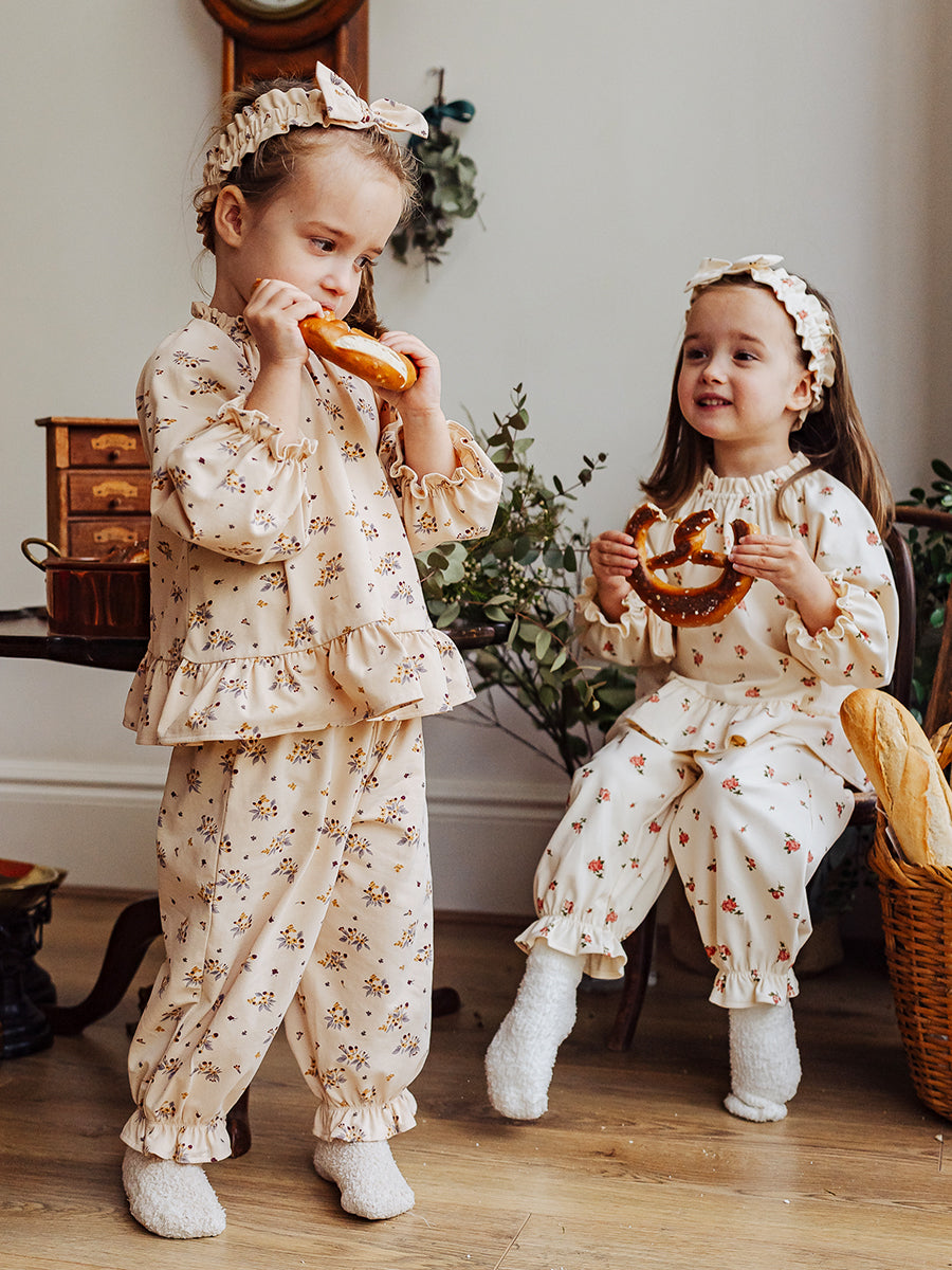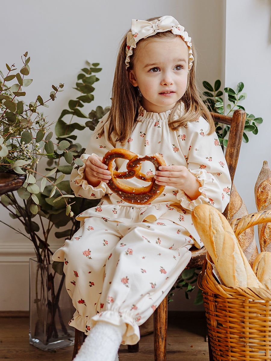 Luna Blouse and Bloomers Set, Strawberry Flower Field, Blush