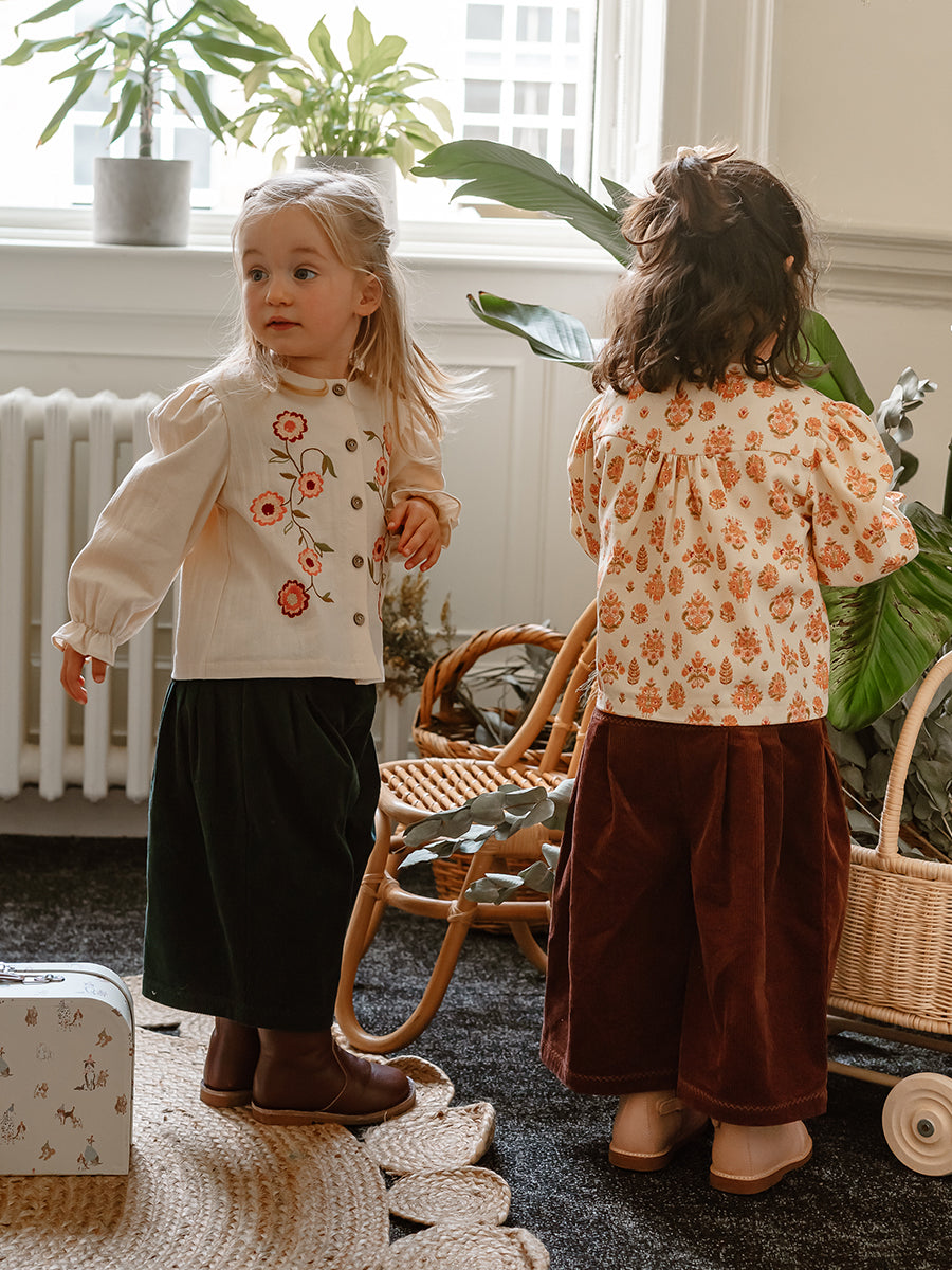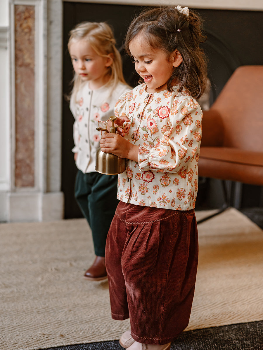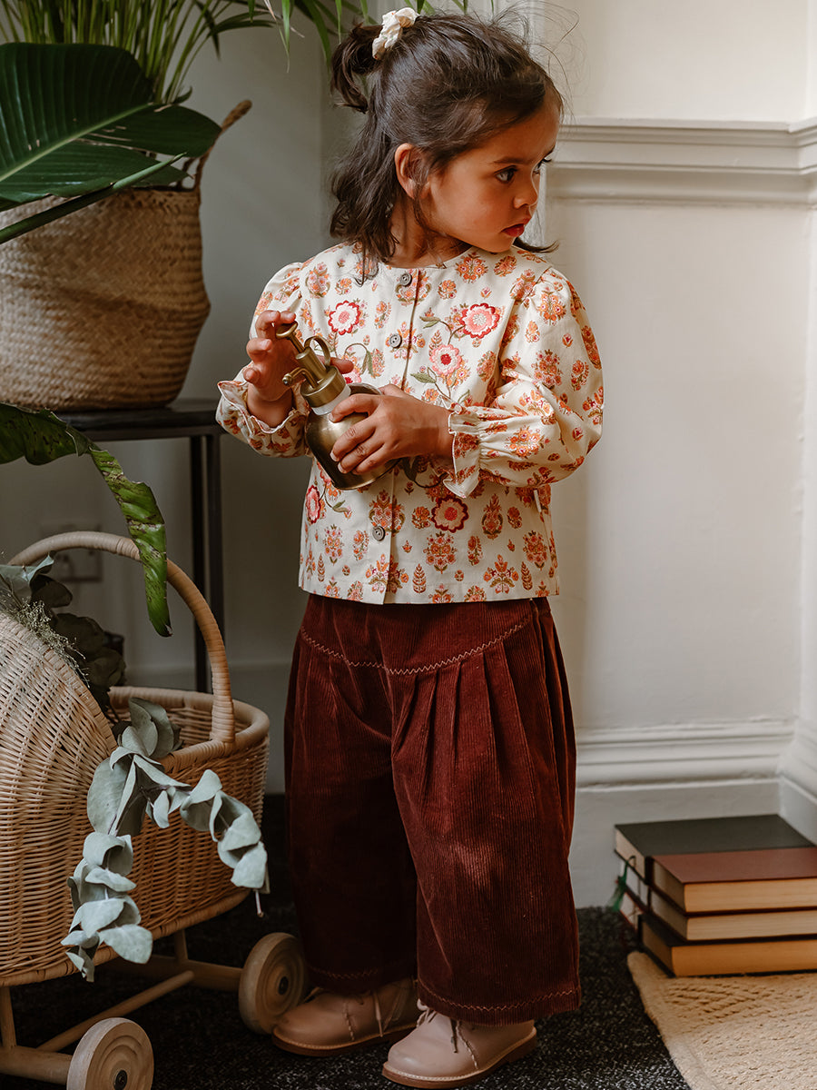 Sally Corduroy Trousers, Wildflower Polka, Burgundy