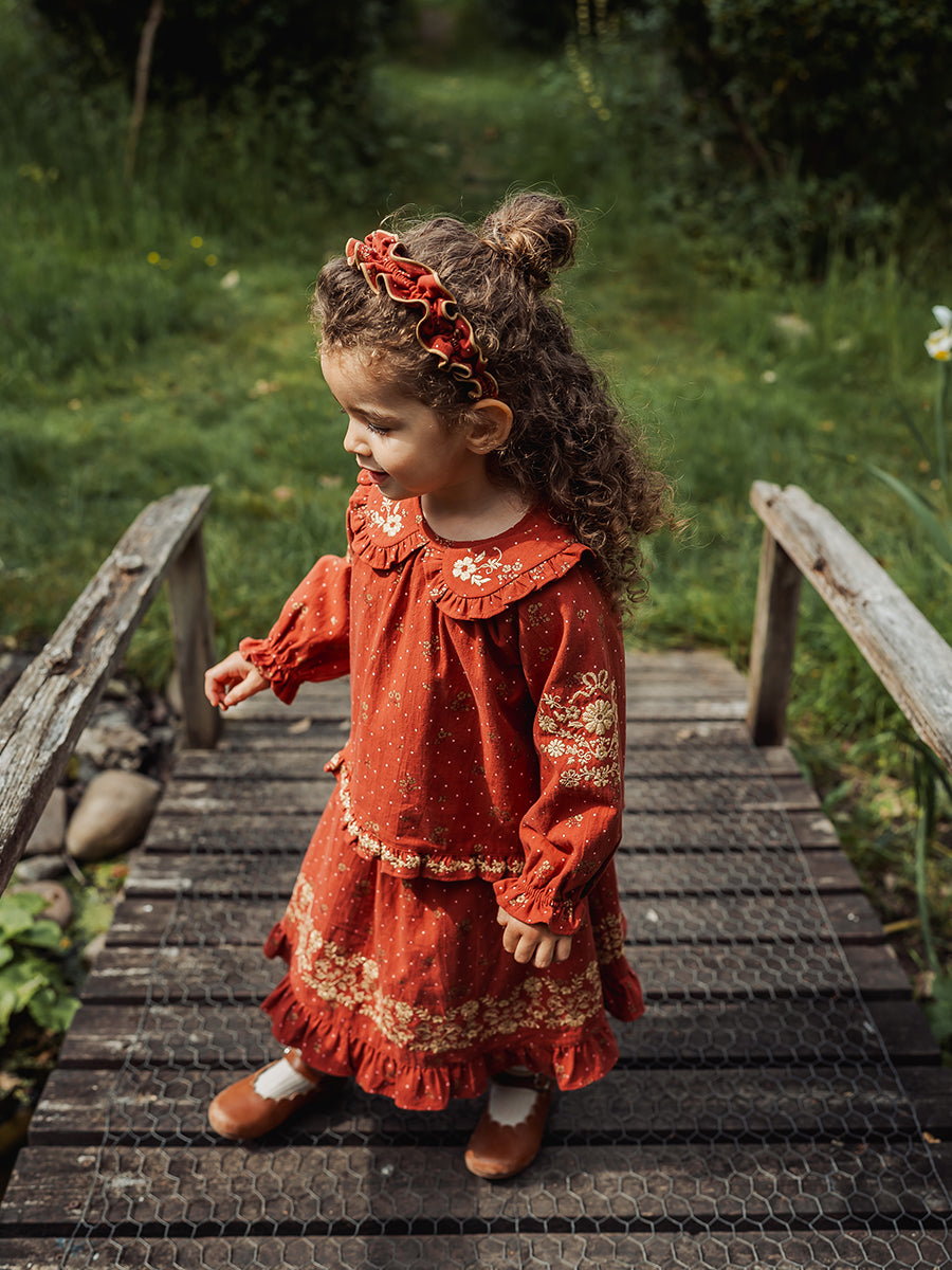 Karina Blouse, Wildflower Polka, Burgundy