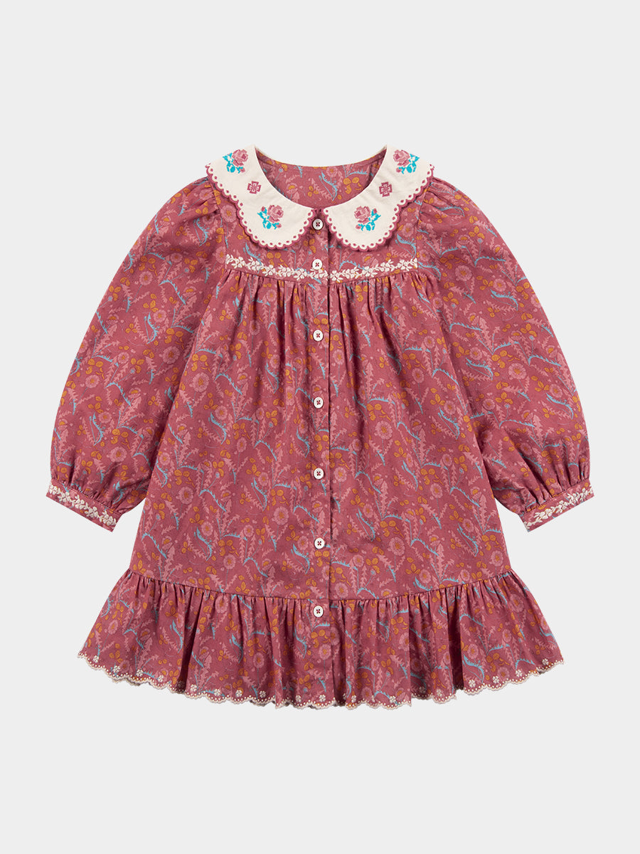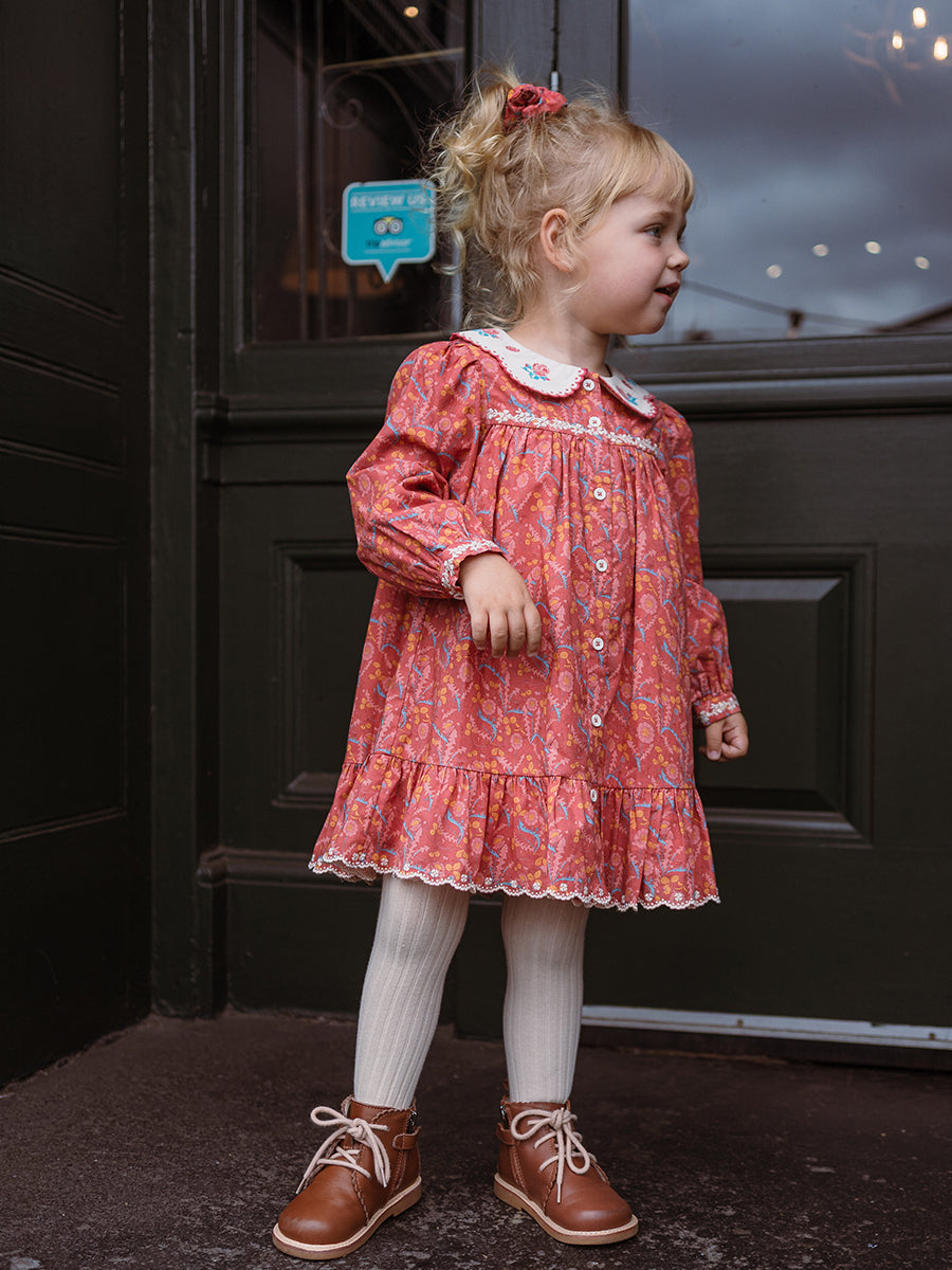 Laila Embroidered Dress, Strawberry Flower Field, Blush