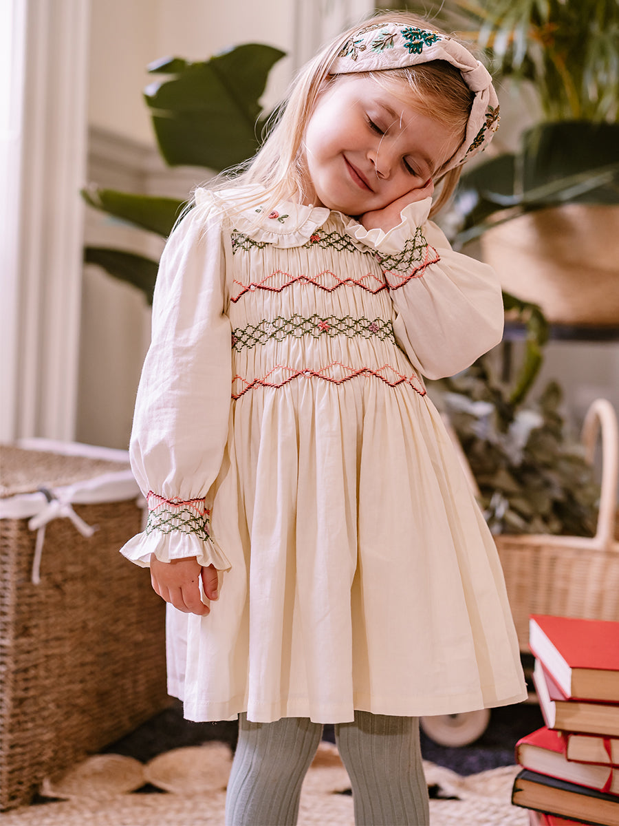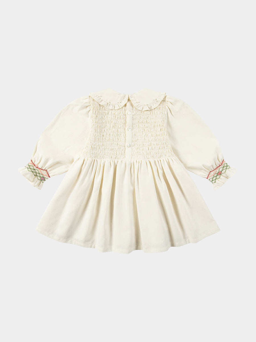 Izzy Hand-Smocking Dress, Ivory White