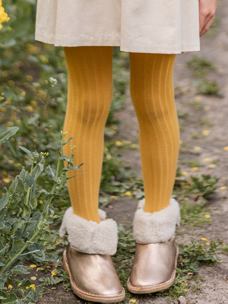 Happyology Ribbed Organic Cotton Tights, Mustard