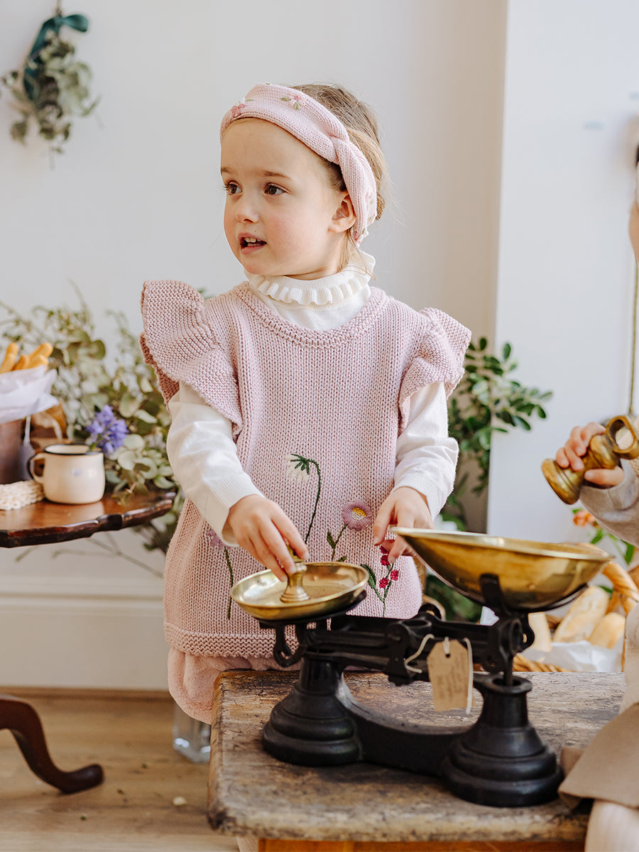 Adelaide Hand-Embroidered Romper, Vintage Bouquet, Rose