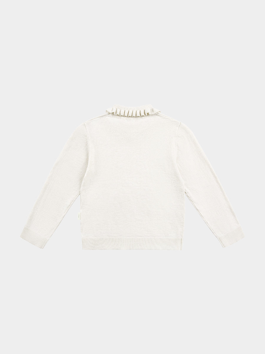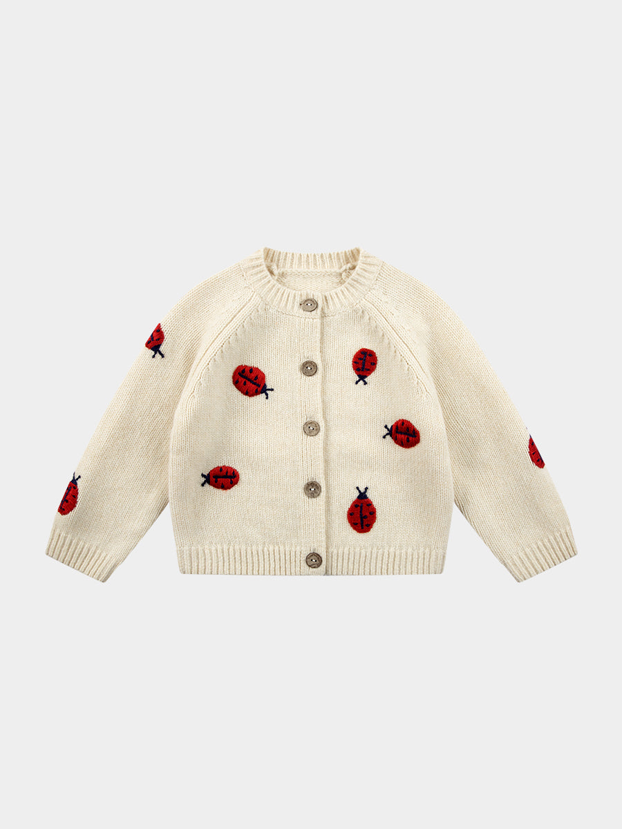 Strawberry Hand-Embroidered Cardigan, Crème Brulee