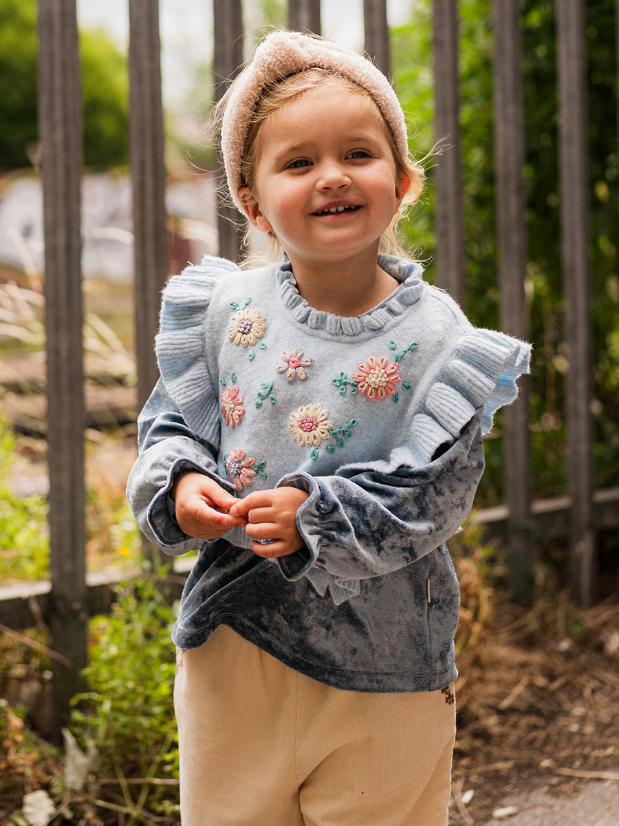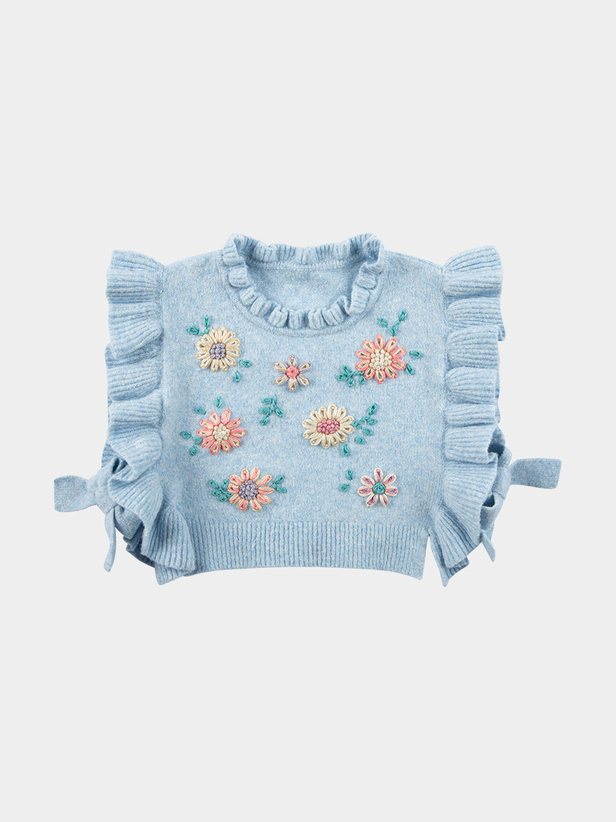 Leila Hand-Embroidered Knitted Vest, Sky Blue