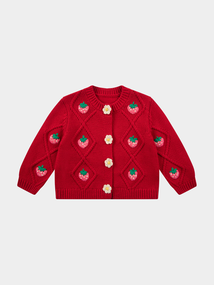 Strawberry Hand-Embroidered Cardigan, Royal Red